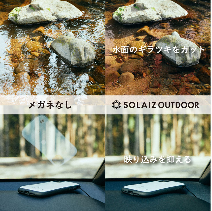 実際に偏光レンズ越しの視界は驚くほどクリア!水面のギラツキだけでなく、運転中のフロントガラスの光の反射やものの映り込み、路面の照り返しを防いでくれます。またゴルフの芝目をくっきり見せてくれます。